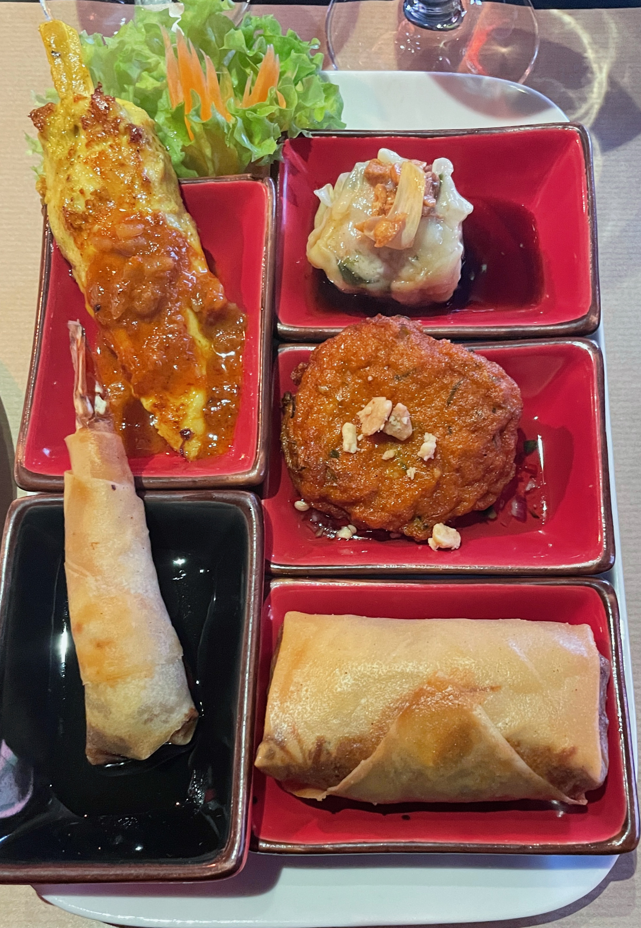 - Assiette Chanena : assortiment d’entrées thaï accompagné de ses quatre sauces.